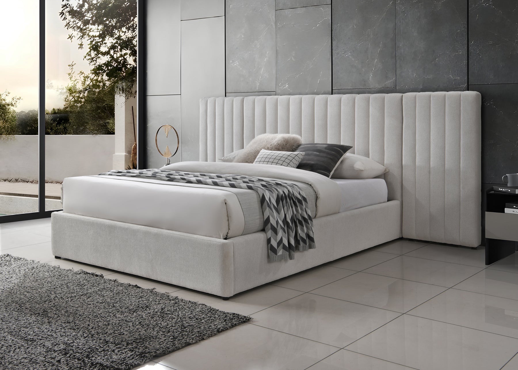 The Corsica queen bed is a statement piece that anchors the bedroom with refined Italian styling and tailored sophistication. Its defining feature is the elongated, wall‑spanning bedhead, designed to create a luxurious, hotel‑suite ambience and a strong architectural focal point in any interior scheme.