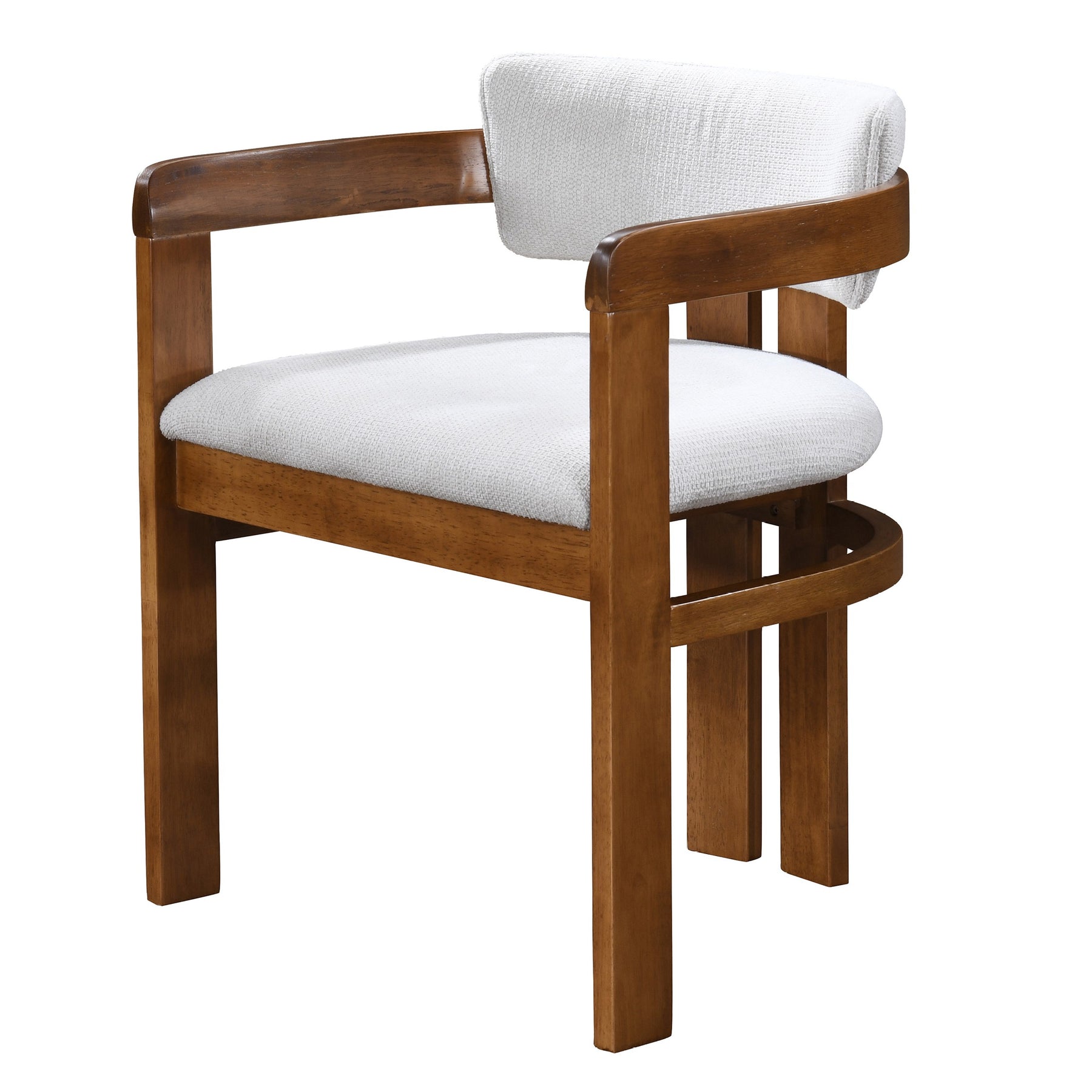 A gently curved backrest defines the chair’s silhouette, embracing the body with supportive ergonomics and a sculptural presence. This sweeping arc is not merely decorative—it creates a natural cradle for the shoulders, enhancing comfort during lingering meals and long conversations. The generous seat cushion provides plush resilience, maintaining its loft and shape while inviting relaxation.