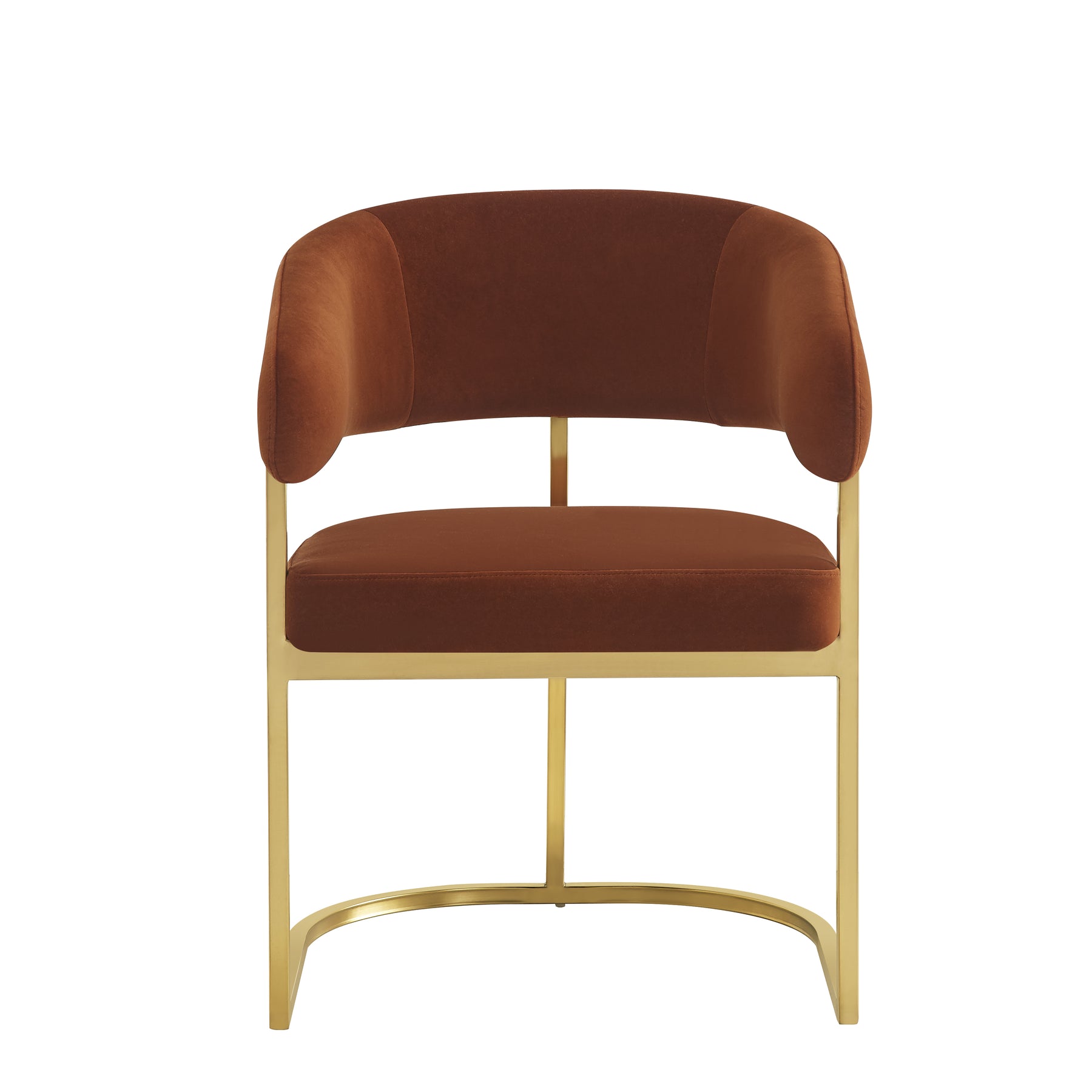 Introducing the Gianna Dining Chair—a masterpiece of Italian craftsmanship that elevates your dining experience to unprecedented elegance. This regal statement piece seamlessly marries rich Toffee upholstery with lustrous brushed gold accents, creating a harmonious balance of warmth and sophistication.