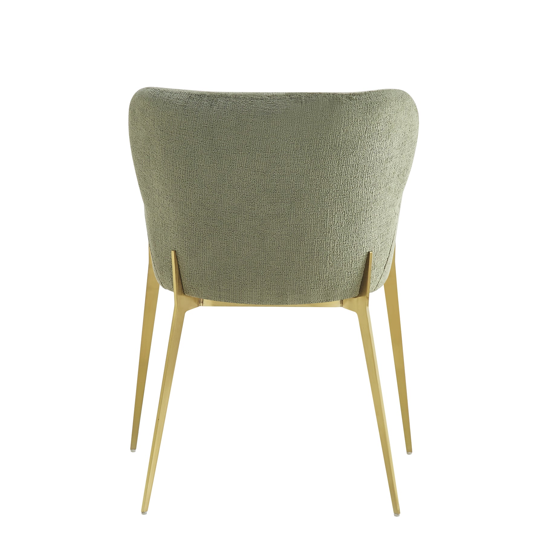 The Lucia Dining chair brings elegance to your dining space with its striking fern green upholstery paired against a refined brushed gold frame.