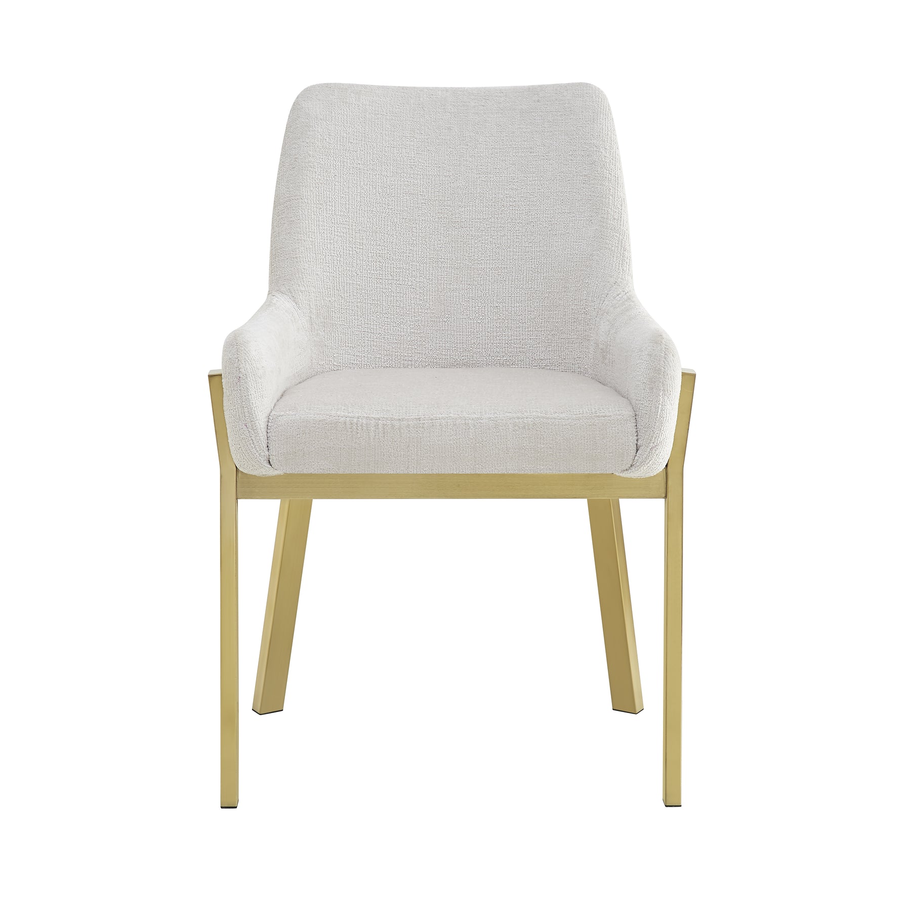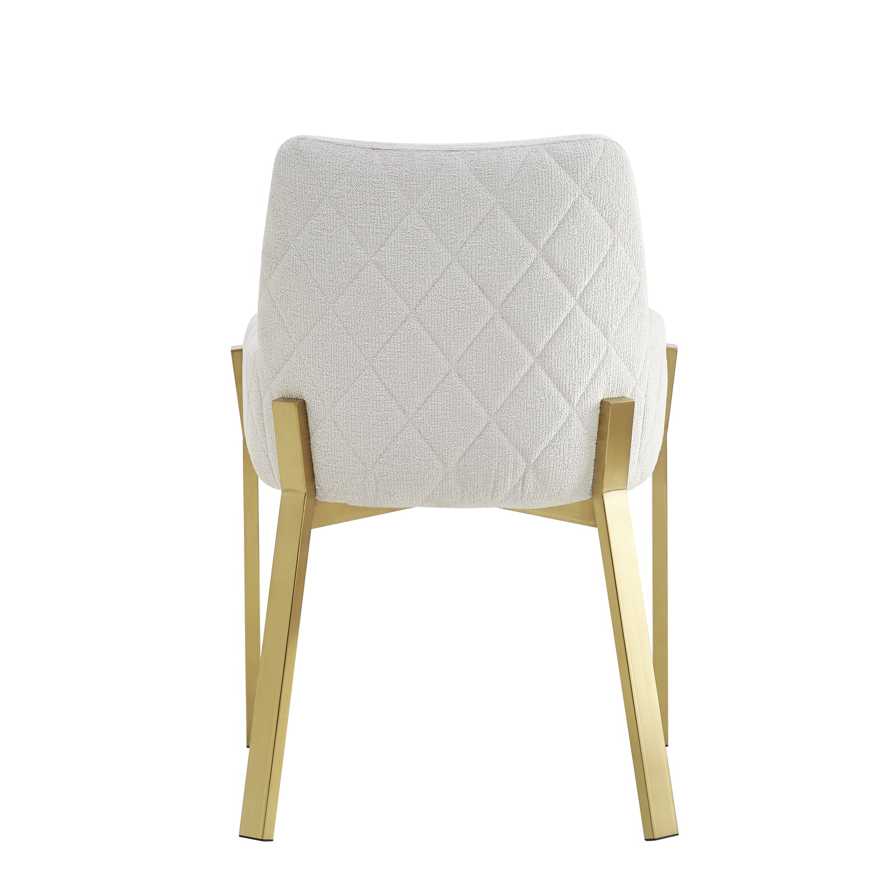 The luxurious Mateo dining chair embodies refined Italian design with its plush high‑back silhouette and sculpted arms. Upholstered in premium commercial‑grade fabric, it offers superior comfort and durability for both residential and hospitality interiors. The sturdy, robust frame in a brushed gold finish adds modern glamour and architectural presence. Elegant diamond stitching along the sides introduces a tailored, sophisticated detail that elevates any dining space.