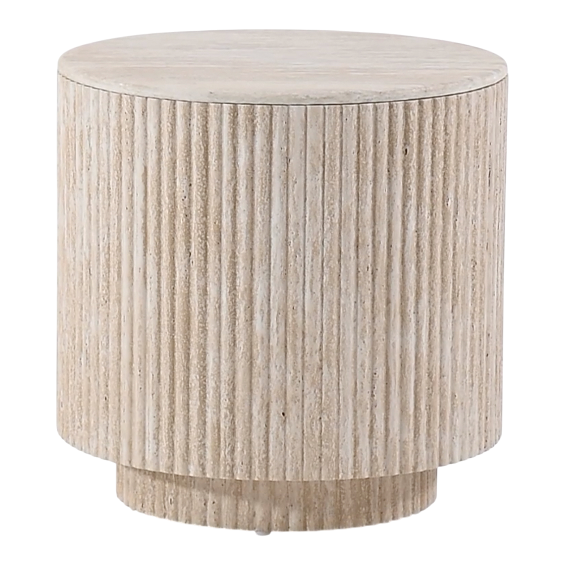 The Venice Side Table combines generous proportions with refined detailing, featuring distinctive ribbed and fluted sides and base that add visual depth and architectural interest.