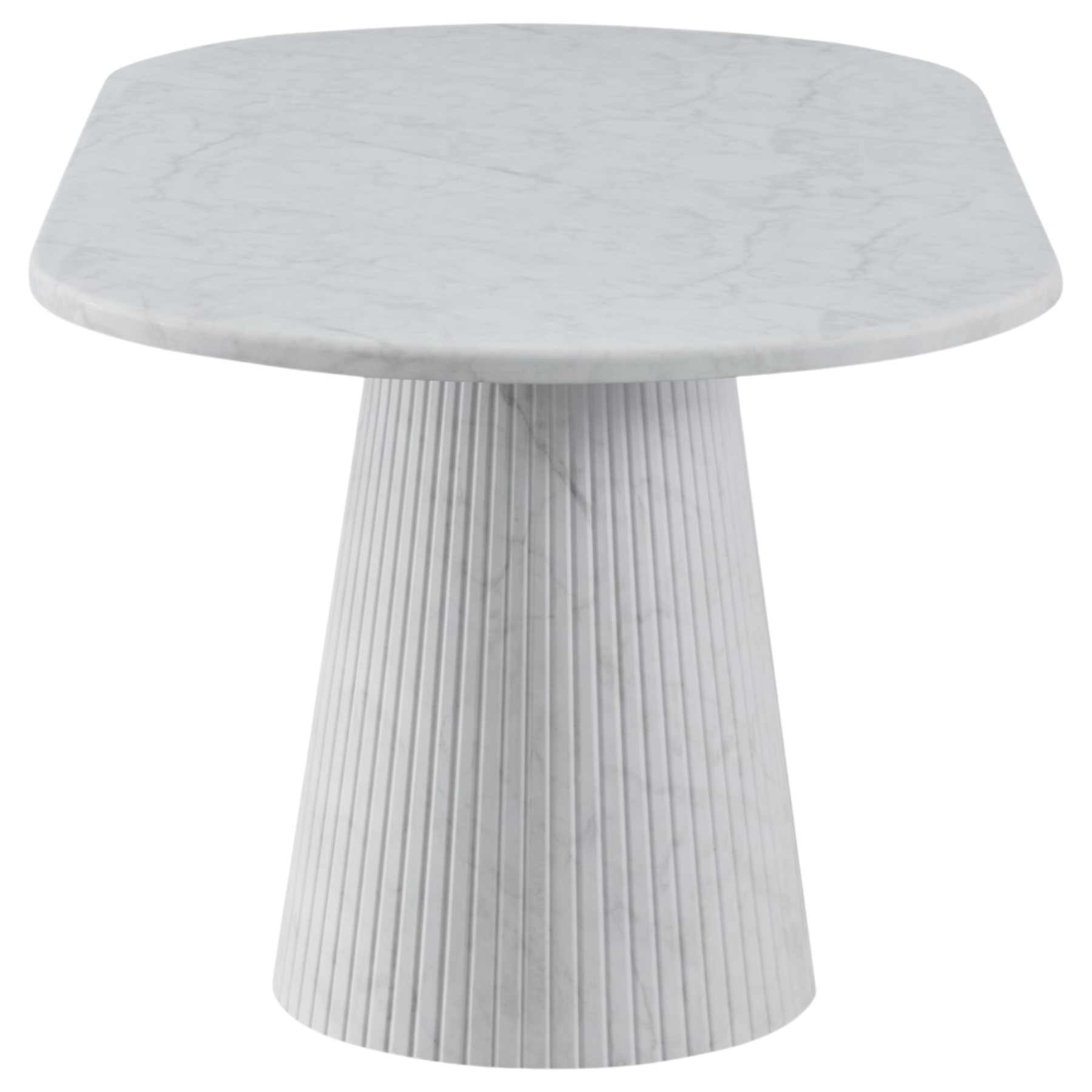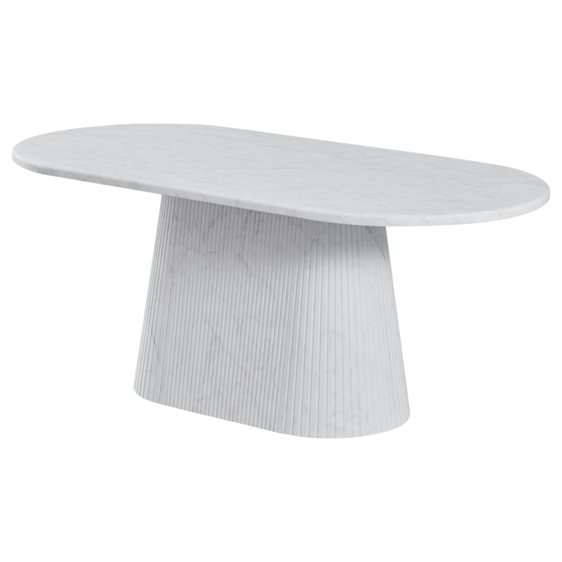 Round Verona dining table with a marble finish, 1.8 meters in length, featuring a sleek and modern design for dining rooms.